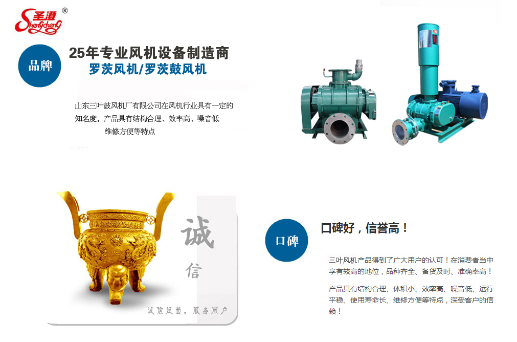 山東三葉鼓風(fēng)機(jī)廠有限公司(原章丘市三葉鼓風(fēng)機(jī)廠)創(chuàng)建于1990年,是專業(yè)生產(chǎn)羅茨鼓風(fēng)機(jī)、羅茨真空泵、增壓泵以及回轉(zhuǎn)式風(fēng)機(jī)系列產(chǎn)品的廠家,南靠309國道、膠濟(jì)鐵路線,北接濟(jì)青高速公路,地理位置優(yōu)越,交通便利。本公司本著“質(zhì)量第一、誠信為本”的指導(dǎo)方針,經(jīng)過十多年的發(fā)展,以過硬的產(chǎn)品質(zhì)量,及時(shí)完善的售后服務(wù)已在市場中占領(lǐng)一席之地。本公司生產(chǎn)的風(fēng)機(jī)噪音低、高效節(jié)能、外型美觀;風(fēng)機(jī)進(jìn)、排氣口采用螺旋形狀,使進(jìn)排風(fēng)過程按螺旋線的方向循序切入。產(chǎn)品具有結(jié)構(gòu)合理、體積小、效率高、噪音低、運(yùn)轉(zhuǎn)平穩(wěn)、使用壽命長、維修方便等特點(diǎn)。歡迎各界朋友親臨公司洽談業(yè)務(wù),指導(dǎo)工作,攜手并進(jìn)共創(chuàng)美好未來!